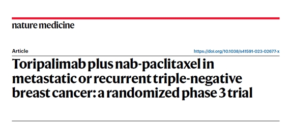 近日,由中國人民解放軍總醫院第五醫學中心江澤飛教授牽頭開展的特瑞普利單抗聯合白蛋白結合型紫杉醇(nab-P)治療首診Ⅳ期或復發轉移性三陰性乳腺癌(TNBC)的Ⅲ期TORCHLIGHT研究成果獲國際頂尖醫學期刊《自然-醫學》(Nature Medicine, IF=82.9)發表。這是TORCHLIGHT研究榮登2023 ASCO年會重磅研究摘要(LBA)快速摘要專場口頭彙報後,再次獲得國際學術的認可。